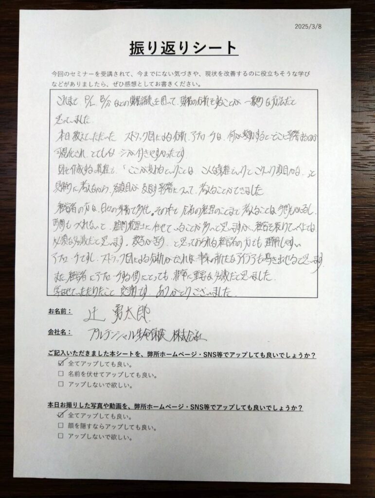 今回の記事は、セミナーにご参加いただいた方々との写真や感想文のうち許可をいただいたものを共有いたします。
