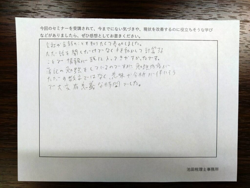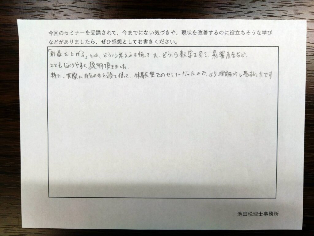 このセミナーは商売の本質に迫る内容で、今回もご参加いただいた方から色んなお褒めの言葉をいただくことができました。